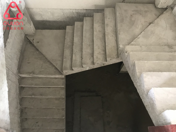 巨菱Gulion技术人员跟现场施工师傅 认真规划后期别墅电梯安装位置